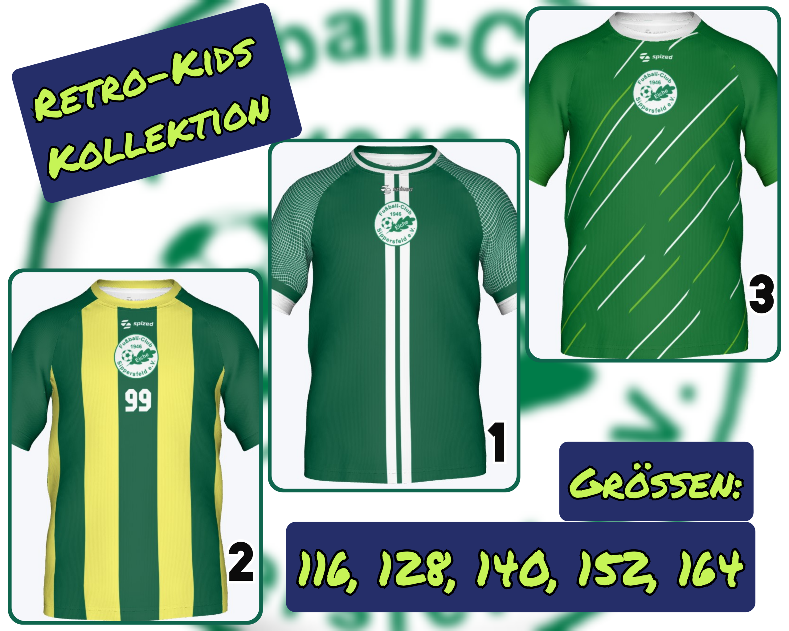 Folgende Größen sind bestellbar: 116, 128, 140, 152 & 164